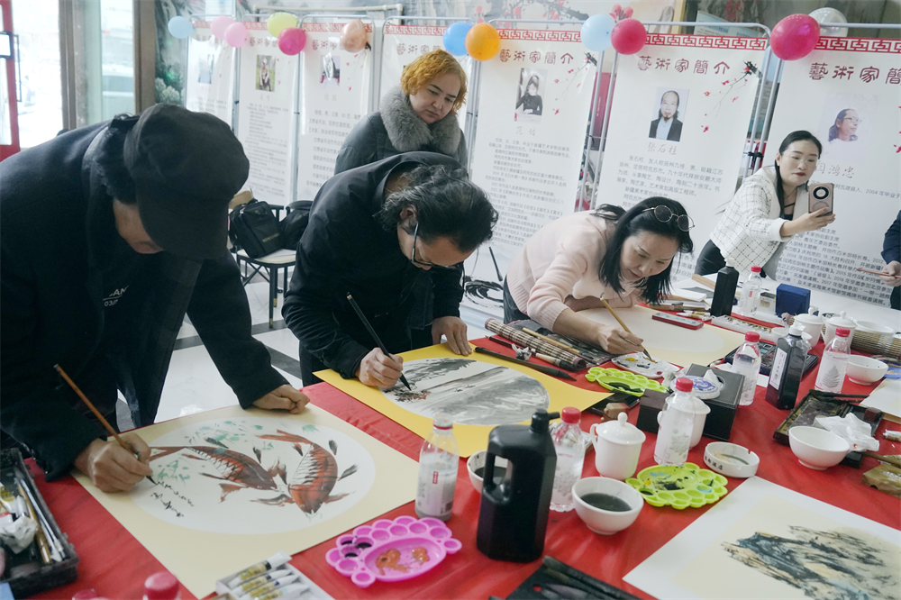 12月29日,新疆温宿县书协和美协联合开展2025年“福都纳福迎新春”暨书画文化进企业公益活动。来自阿克苏地区和温宿县的书画、美术老师与企业员工欢聚一堂,共同交流创作书法、绘画作品80余件。此次活动不仅为基层企业员工送去了新年新春的美好祝福,而且营造了欢乐祥和的节日氛围。(来源:温宿县融媒体中心)