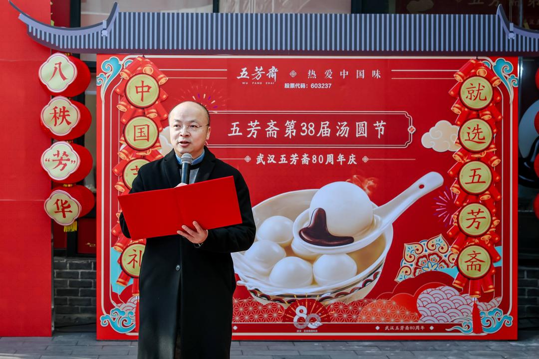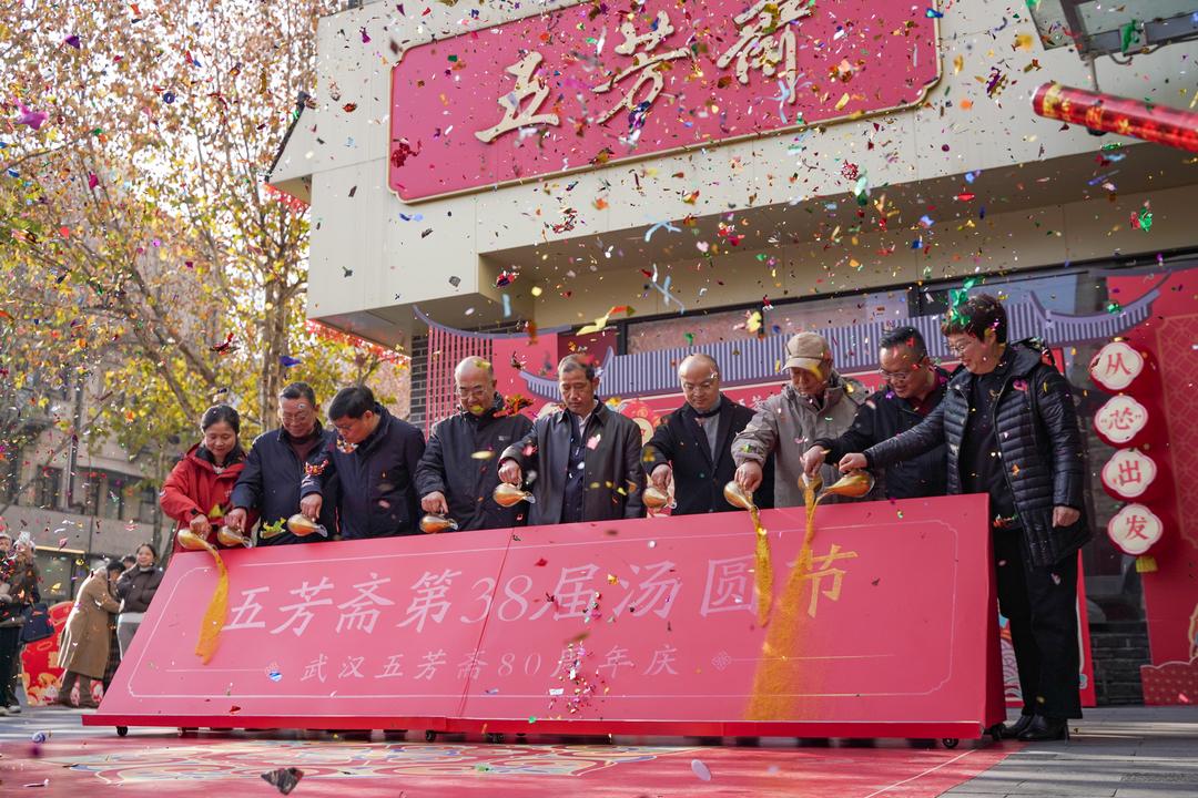 (洪城 杨颖 程丹)当飘香80年的芝麻馅撞上马年的第一缕年味,武汉的新春序章,从五芳斋的汤圆锅里沸腾开了!1月6日,中山大道武汉五芳斋总店前,《卖汤圆》的经典旋律伴着蒸腾热气穿街而过,第38届五芳斋汤圆节暨武汉五芳斋80周年庆典正式拉开帷幕。