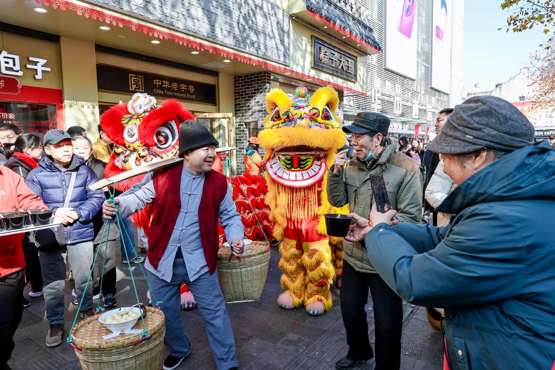 穿粗布短打的“挑担郎”肩挑竹担,沿街吟唱《卖汤圆》,路过的市民与“挑担郎”积极互动,即可免费试吃一碗叠式汤圆,沉浸式感受老武汉的市井烟火。“像穿越回小时候,奶奶带我买汤圆的场景突然就清晰了。”60岁的张阿姨接过汤圆,眼眶有些湿润。