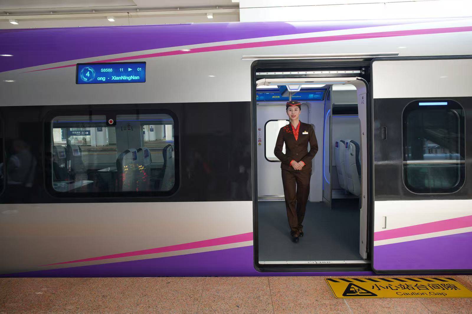 此次公交化运营同步实现了旅客乘车体验的全方位升级。投入运营的CINOVA2.0型城际市域智能列车是国内城际市域列车领域的先进车型,首次应用了智能辅助驾驶、数字孪生等前沿技术,实现了全场景智能运营,具备起停快、乘降快、载客量大、安全可靠等突出特点,车内采用的环保可降解内饰材料、智能节能空调系统、无线充电、无障碍卫生间等软硬件设施,将为旅客出行带来更加绿色、科技和舒适的乘车体验。