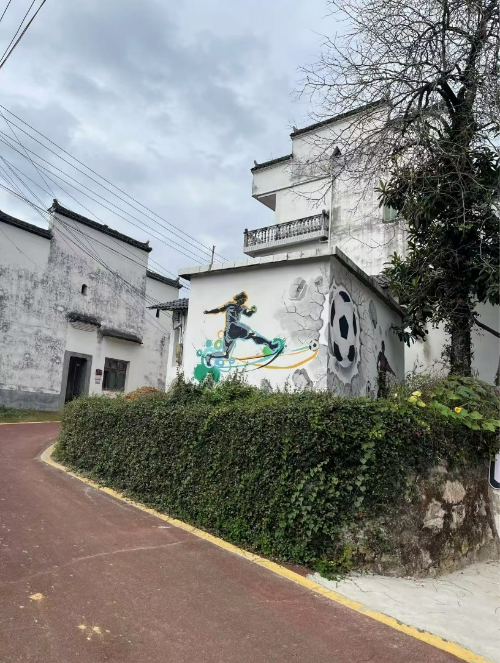图说:黄砂村有着各种体育主题民宿,村里随处可见各类体育元素