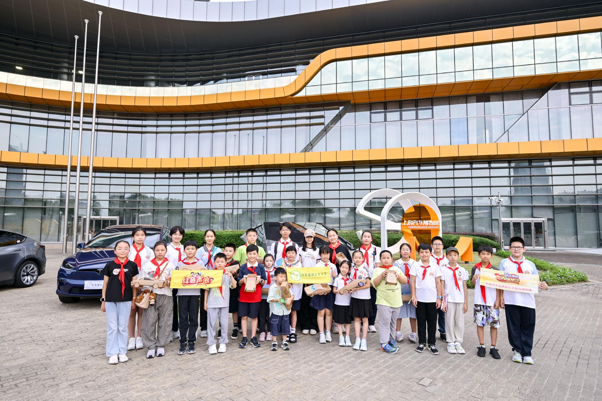 活动当天,来自中国福利会少年宫上海市少先队队长学校学员家庭以及通过公开报名参与的市民观众在专业讲解员的带领下,参观了博物馆常设展区深入了解汽车工业发展历程。创意工坊环节更是吸引了众多青少年积极参与,太阳能小车DIY与彩绘DIY瓦楞车两个不同的手工体验,让孩子们在动手实践中感受科技的魅力。而主题为《电动车发展史&可持续能源解决方案》的科学讲堂,则让孩子们深入了解到了科技发展是如何让电动汽车成为不可忽视的未来潮流。在博物馆外广场的特斯拉灯光秀,则是对科学讲堂最好的呼应。