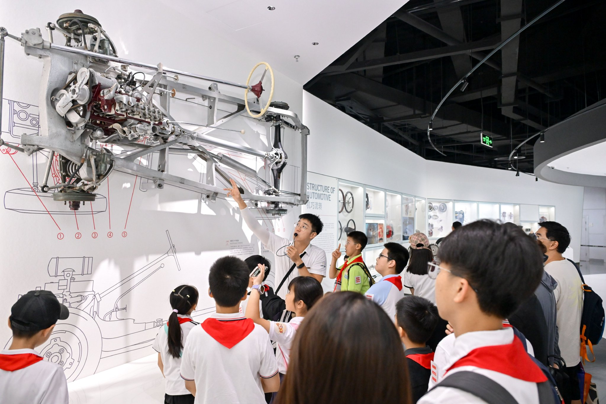 值得一提的是,经过精心筹备的三楼技术馆也在近期对公众重新开放。技术馆以"进化之域"为主题,先期开放“汽车技术演进”及“车行无界”两大板块。在“汽车技术演进”展区,从“汽筑梦神行”、“随源而动”、“机巧流转”这三个章节,以多款实物展示、模型示例以及多媒体演绎,从汽车发动机发展脉络梳理到新能源汽车动力剖析,从自动驾驶的革新到智能交通的演变,从传统陆行汽车到飞天汽车乃至智能移动空间的质变,讲述了汽车技术如何随着人类生产力发展而不断演进的过程,全面展示汽车这一工业技术高度集成的人类智慧结晶,将汽车技术与信息技术与材料科学紧密融合,展现未来车、路、人的链接,构建出一个充满包容性、多元化和多维度的体验之地。