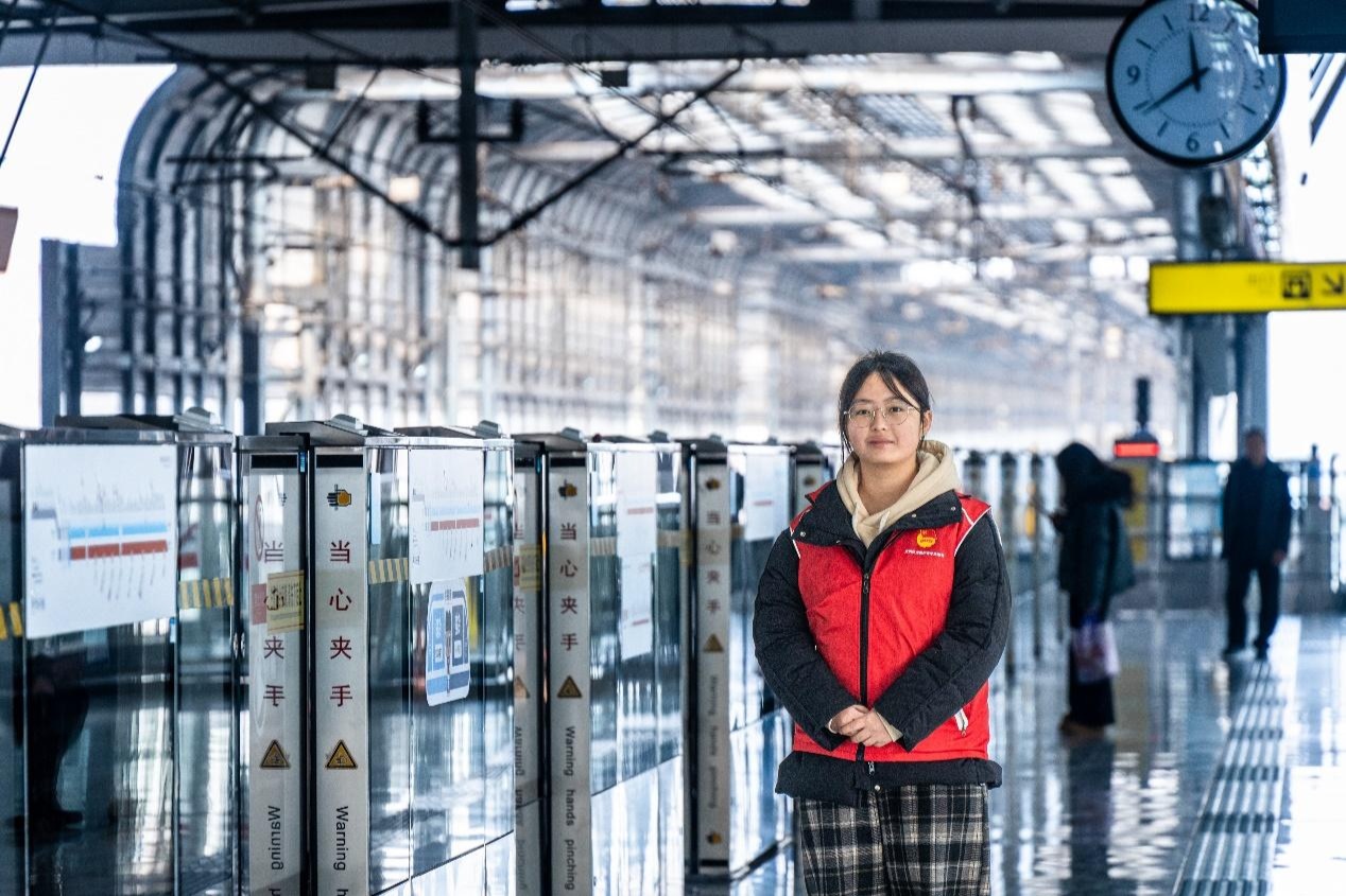 重庆公共运输职院开展轨道“红马甲”志愿服务(黄俊宇 摄)