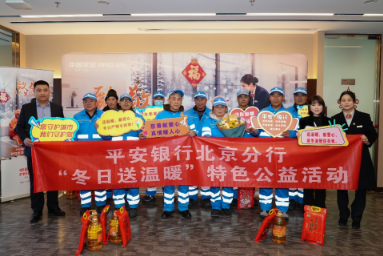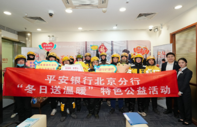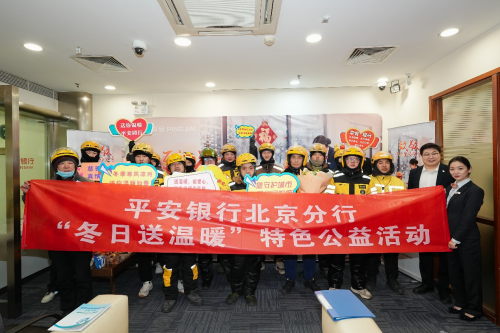 近日,北京寒意正浓,气温持续走低。为积极践行社会责任、传递金融温度,平安银行北京分行组织开展“冬日送温暖”特色公益活动,在支行网点为环卫工人、外卖骑手等户外工作者送上冬日的关怀与问候。
